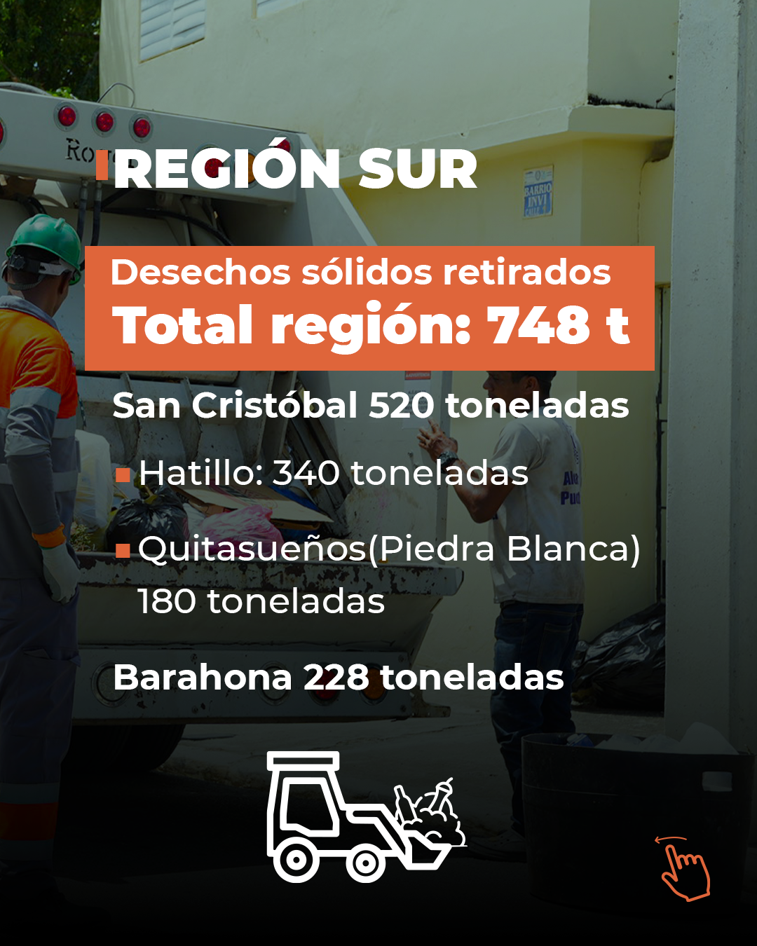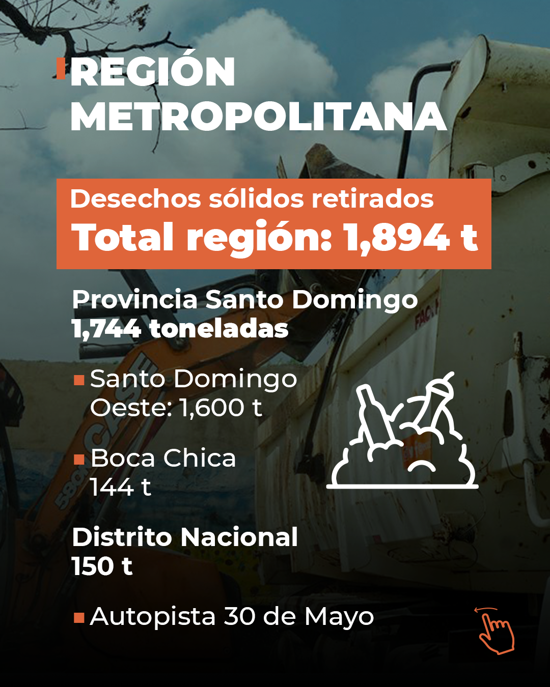 ECO5RD, en coordinación con las alcaldías, desplegó camiones recolectores, volquetas y brigadas de trabajo en el sector Andrés de Boca Chica y en Santo Domingo Oeste, con el objetivo de fortalecer la recogida de desechos sólidos y brindar apoyo directo a los ayuntamientos.